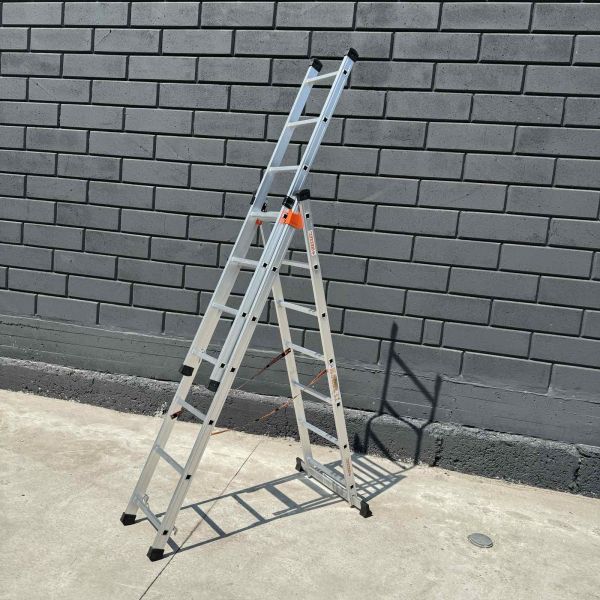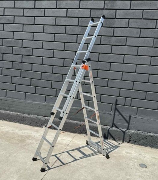 Алюминиевую трехсекционную лестницу Техпром 4,2 м от можно использовать как двустороннюю стремянку или раздвижную лестницу в зависимости от задачи. Эта трехсекционная универсальная алюминиевая лестница легко трансформируется благодаря съёмной третьей секции. В сложенном состоянии её высота в форме стремянки достигает 2,89 м, а полностью разложенная — до 4,2 м. Благодаря лёгкому алюминию она весит всего 10 кг, что примерно как большая спортивная сумка, но при этом остается очень прочной.