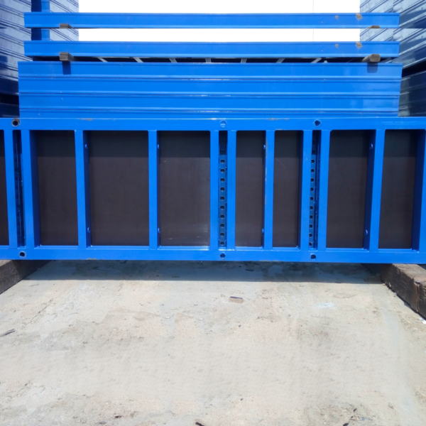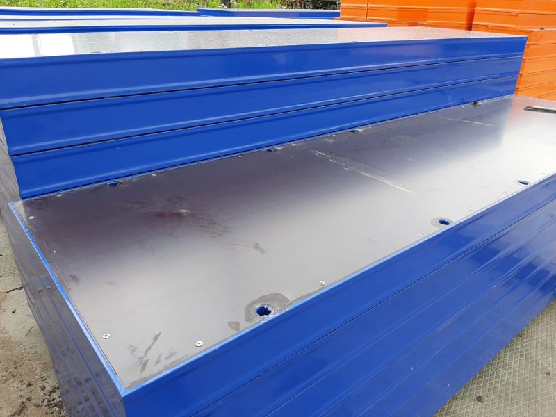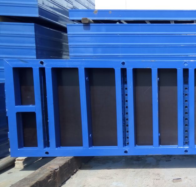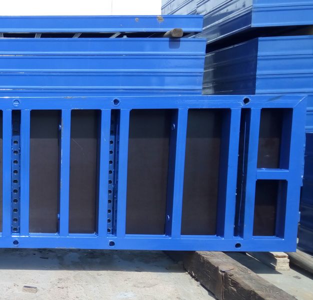 Инструмент из листа фанеры в металлическом каркасе усилен опалубочным и перемычным профилем. Вес щитовой опалубки составляет 102.1 кг. Поверхность каркаса покрыта слоем полимера, что позволяет использовать инструмент не один раз.