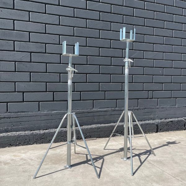 Инструмент обладает довольно простой конструкцией. Две трубы соединены направляющей резьбой и гайкой со скобой-фиксатором. Стойки строительные оснащены приваренными опорами, которые обеспечивают стабилизацию конструкции. Максимальная высота выдвижной стойки 3.5 метров, нагрузка 1.5 тонн. В сложенном состоянии 2 м допустимая нагрузка 3.4 т.