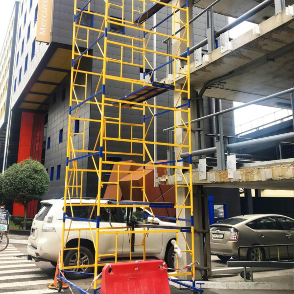 Вышка тура - это строительные леса башенного типа. Оснащена колесами для мобильности, легко перемещается, вполне способна заменить строительные леса.