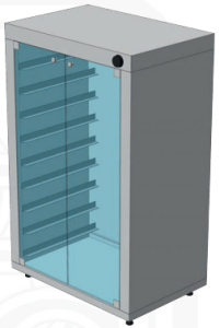 Об'ємна конструкція прямокутної або квадратної форми, з дверцятами та електроприводом, що забезпечує постійну роботу пристрою. Внутрішня частина апарату поділена на секції, в які завантажують листи із заготовками. У нижній частині встановлена ванна для води, що дозволяє підтримувати оптимальну вологість усередині приладу. Двері секцій обладнані термостійким склом, працюють за принципом відчинення.