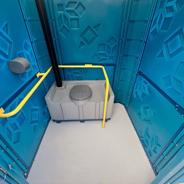 Завдяки просторим розмірам (1,50 м x 1,50 м x 2,05 м) і широкому дверному прорізу (800 мм), біотуалет забезпечує легкий доступ і маневреність для інвалідних візків. Внутрішній простір обладнано поручнями та низьким порогом для додаткової підтримки та зручності.