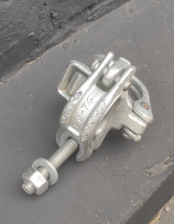 Хомут поворотний для будівельних риштувань використовується для кріплення вертикальних труб між собою. Цей тип хомута дозволяє створювати складні просторові конструкції будівельних риштувань із встановленням на складні об'єкти.