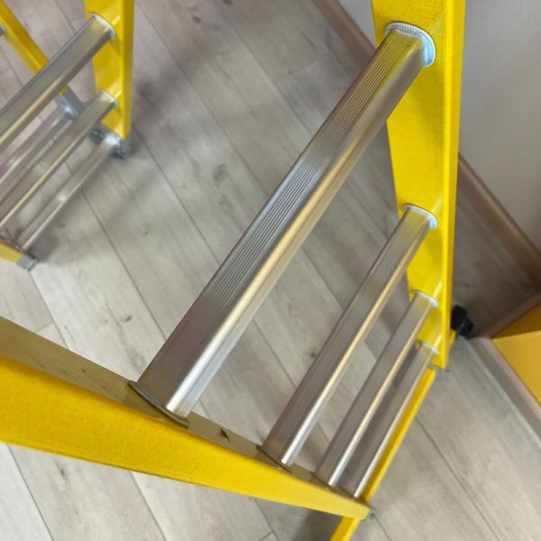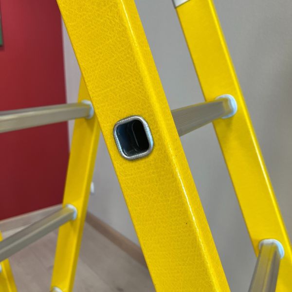 Секційна компоновка 4 × 6 розширює діапазон доступу та робить модель зручною в різних робочих схемах. Завдяки шарнірним вузлам це повноцінна шарнірна драбина-трансформер, що зберігає стійкість навіть на максимальній висоті. Діелектричні шарнірні драбини підходять для виконання робіт поблизу електрообладнання.