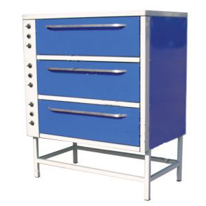 Пекарська шафа промислова має три окремі духовки. Температури в шафах регулюються за допомогою плавних регуляторів потужності. Для нагрівання до робочої температури печі потрібно близько 10 хвилин. Пекти передбачає довгу роботу без зупинок. ТЕНи захищені від перегріву.