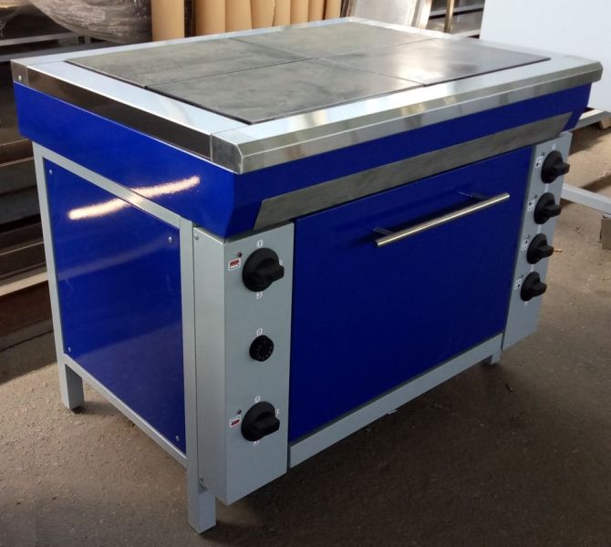 Промислова електрична плита - плита з чотирма конфорками з чавуну з вбудованою духовкою. Піч призначена для тривалої роботи та захищена від перегріву. Електрична плита легше контролює нагрівання, забезпечуючи стабільний результат виготовлення порівняно з газовою плитою.