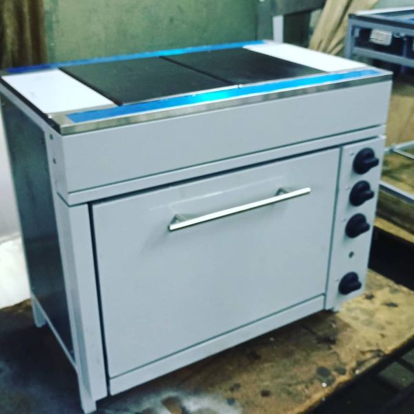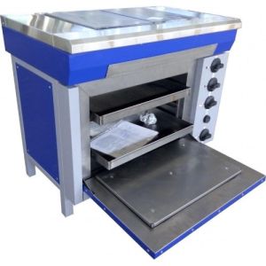Піч електрична двоконфоркова зроблена з нержавіючої сталі з конфорками з чавуну. Конфорки між собою поєднуються в одну робочу поверхню. Конфорки регулюються окремо один від одного за допомогою реле.