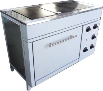 Плита електрична для ресторанів є конструкцією з нержавіючої сталі з вбудованими в нього конфорками, що утворюють одну робочу поверхню. Всі конфорки включаються окремо за допомогою реле та оснащені світловими індикаторами. Духовка в електроплиті обладнана лампою світла.