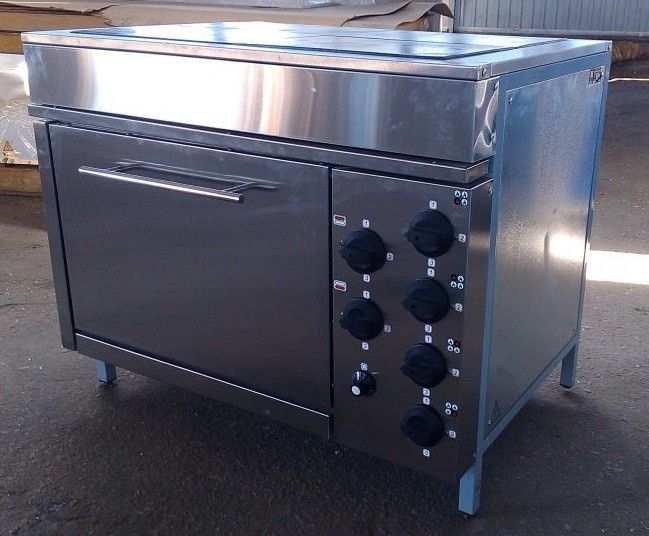 Електричні плити для громадського харчування - це промислова піч проста в обігу. Передбачає тривалу роботу в режимі нон стоп. Електроплита для їдальні є стільницею на якій розташовуються чотири прямокутні конфорки, утворюють одну суцільну поверхню. Температура конфорок регулюється за допомогою плавного перемикача – реле.