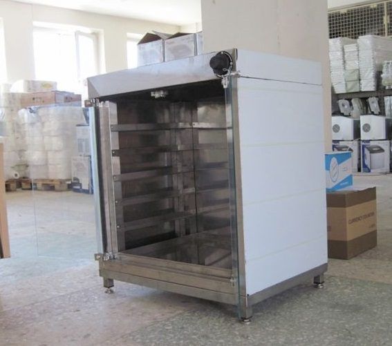 Шафа компактна і не висока. Шафа має 10 рівнів під пекарські листи розміром 53*65 см. Габарити шафи 80*65.5*127.5 см. Потужність споживання 1.2 кВт. Регульована температура шафи від +30 до 90 градусів за Цельсієм.