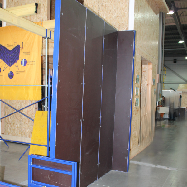 Щит кутовий внутрішній відрізняється простотою конструкції: у металевий каркас укладено лист ламінованої фанери товщиною 1.8 см. Для збільшення міцності каркас посилений ребрами жорсткості та профілем 2.0 мм.
