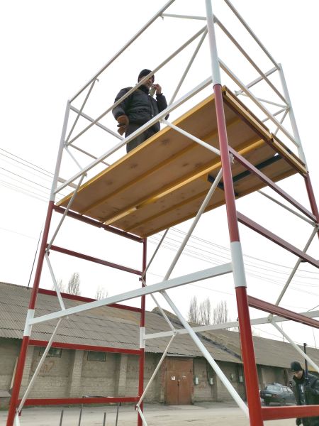 Вишка-тура будівельна пересувна 6 метрів застосовується для миття вікон, встановлення вивісок, утеплення будинку.