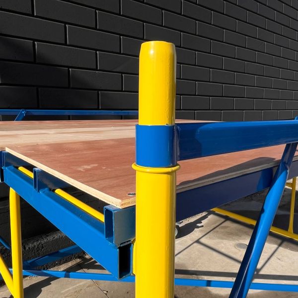 Сталева вишка-тура з розмірами настилу 2.0 х 2.0 м надає міцний і стабільний робочий майданчик. З висотою настилу 1.8 м і робочою висотою 3.4 м вона забезпечує безпечні умови для робіт на висоті. Виготовлена в Україні зі сталі з полімерним покриттям, що робить її стійкою до корозії та забезпечує довгий термін служби.