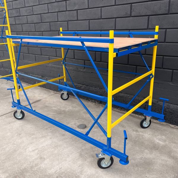 Переваги даної конструкції у простоті складання: вишку може зібрати одна людина. Вишка тура надійна та безпечна, кріпитися за допомогою гвинтових опор так, щоб колеса не торкалися опори на 2 мм.
