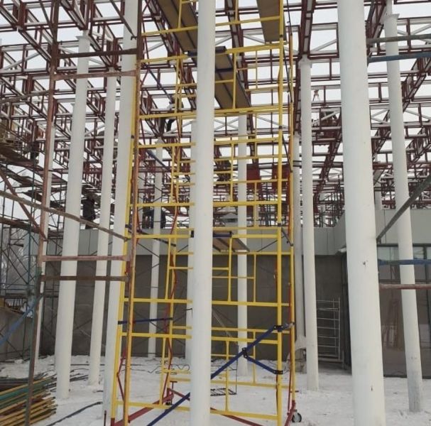Все в комплекті це дозволяє швидко, якісно та надійно монтувати конструкції висотою 14 поверхів у безпосередній близькості до об'єкту, що дуже зручно для фасадних робіт.