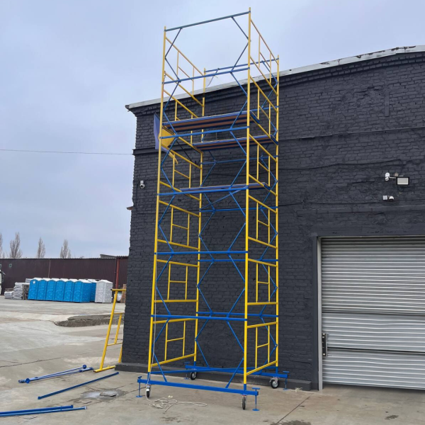 Риштовки будівельні використовують для робіт у приміщеннях та зовні. Стійкі, надійні, прості у встановленні. При установці необхідно гвинтові опори встановити так, щоб колеса не торкалися поверхні на 2 мм.