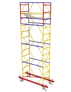 3. Вишки б/у розміром 1.2 х 2.0 м - діаметр коліс 160 мм, полімерно порошкове покриття, настил складається з 2 частин. Нарощуються до висоти 18.3 метра, що дорівнює комплектації 14 + 1. Починаючи з 5 + 1 необхідна установка стабілізаторів. Прапорцевим замки використовують по 2 на базовій палиці, кожної сходах і гантелі. Крок настилу - 0.4 метра;